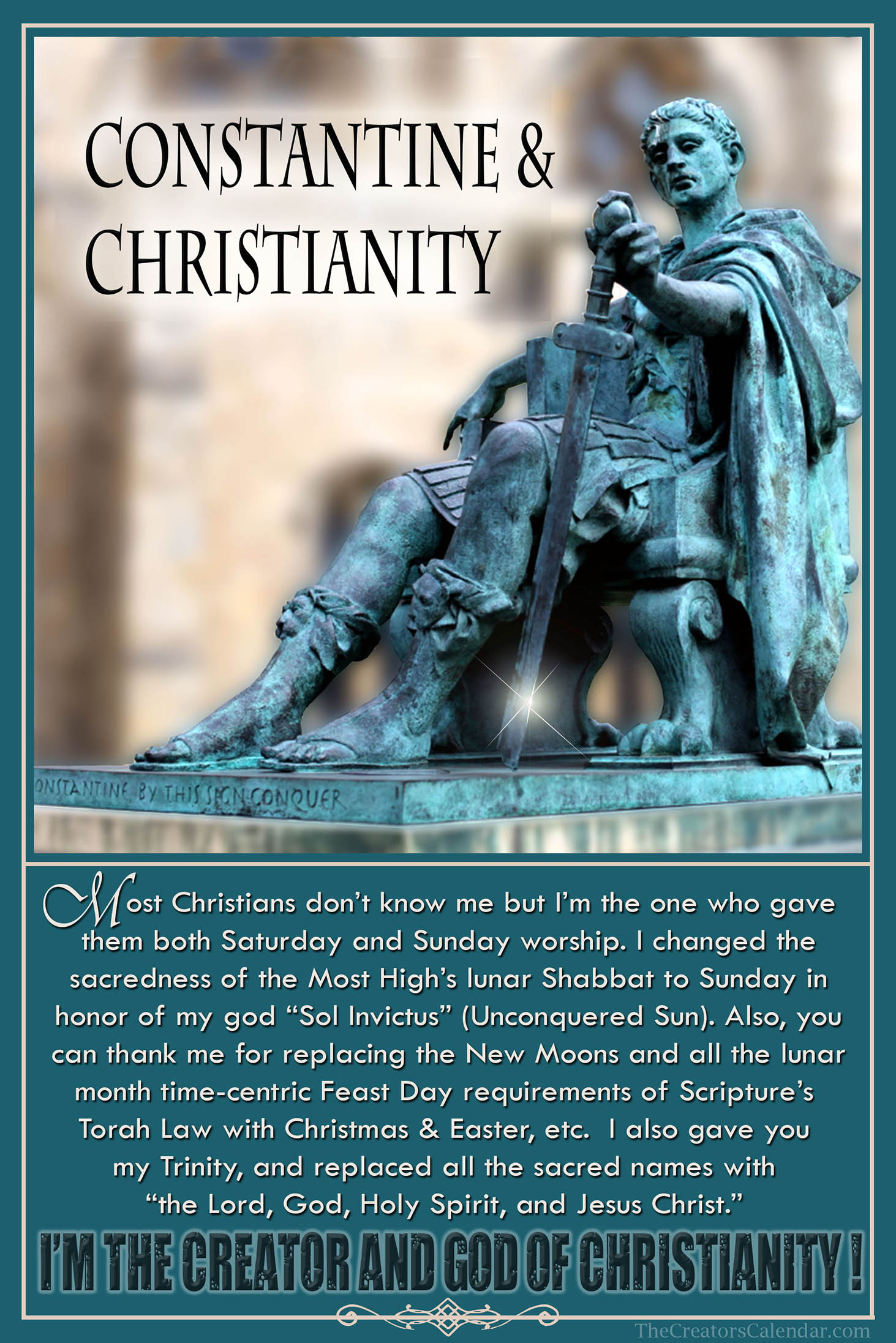 Equipped with his newly fabricated calendar and Easter Sunday, Constantine’s Easter Controversy with the Quartodeciman targeted the Messiah’s obedient followers. These were the last remaining obedient of Earth who counted 14 days to Passover from the full moon when it was still the New Moon. They also kept only a lunar Sabbath. Saturday and Sabbath were never synonymous terms before Constantine’s new calendar and captive Yahudahim (Jews). Read More…