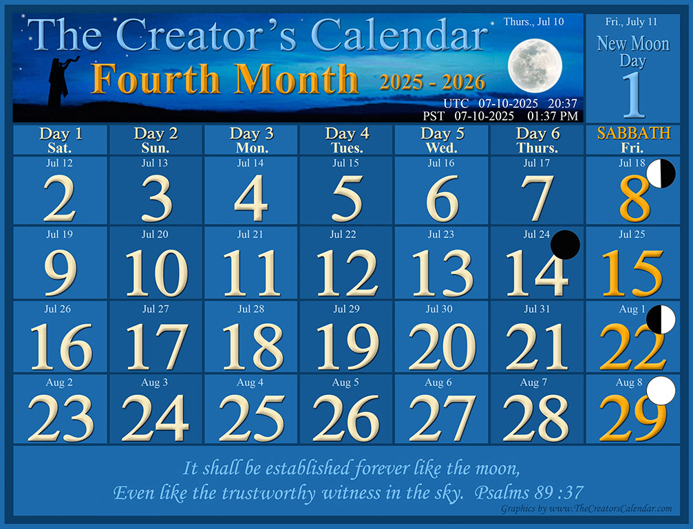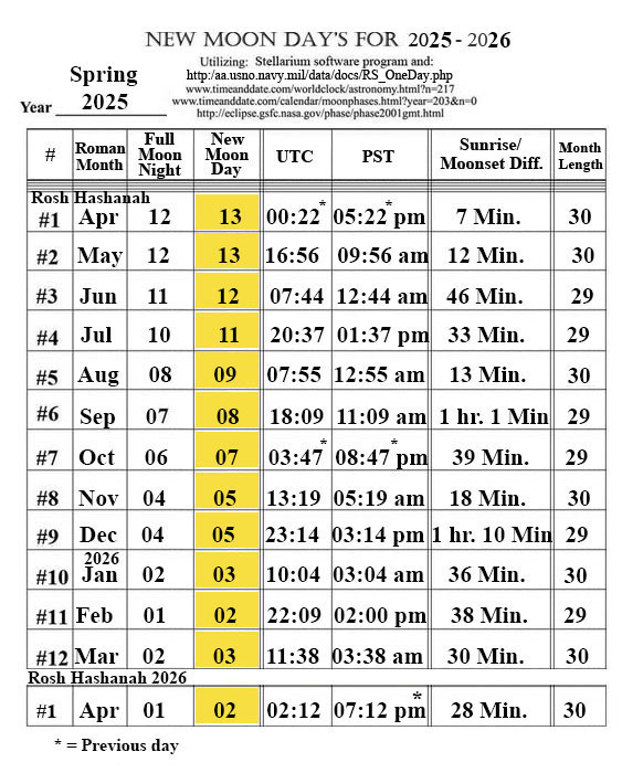 New Year’s Day 2025, the true Rosh HaShanah in the spring, will occur on 04-13-2025 of the Roman Calendar and represents 01-01-5994, the month, day, and year of the Creator’s Calendar, the total number of years since creation. 2025 – 2026 will be a twelve-month year.